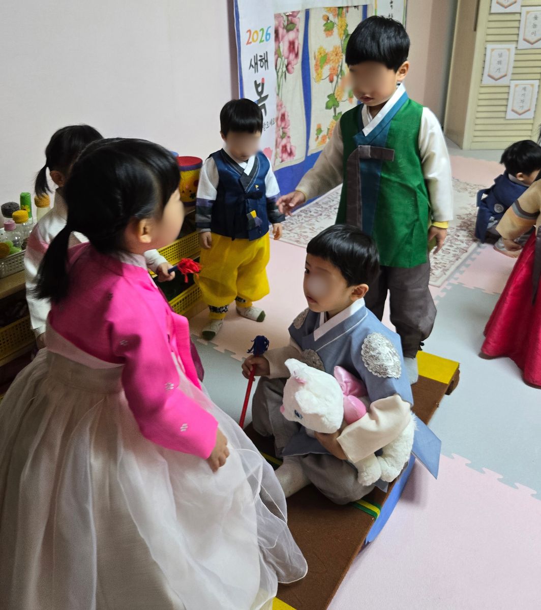 설날을 맞아 아이들과 함께 투호던지기, 재기차기, 비석치기, 뜀뛰기 등 다양한 민속놀이를 즐겼습니다. 놀이를 통해 우리 전통문화를 자연스럽게 경험하며 즐거운 시간을 보냈습니다.