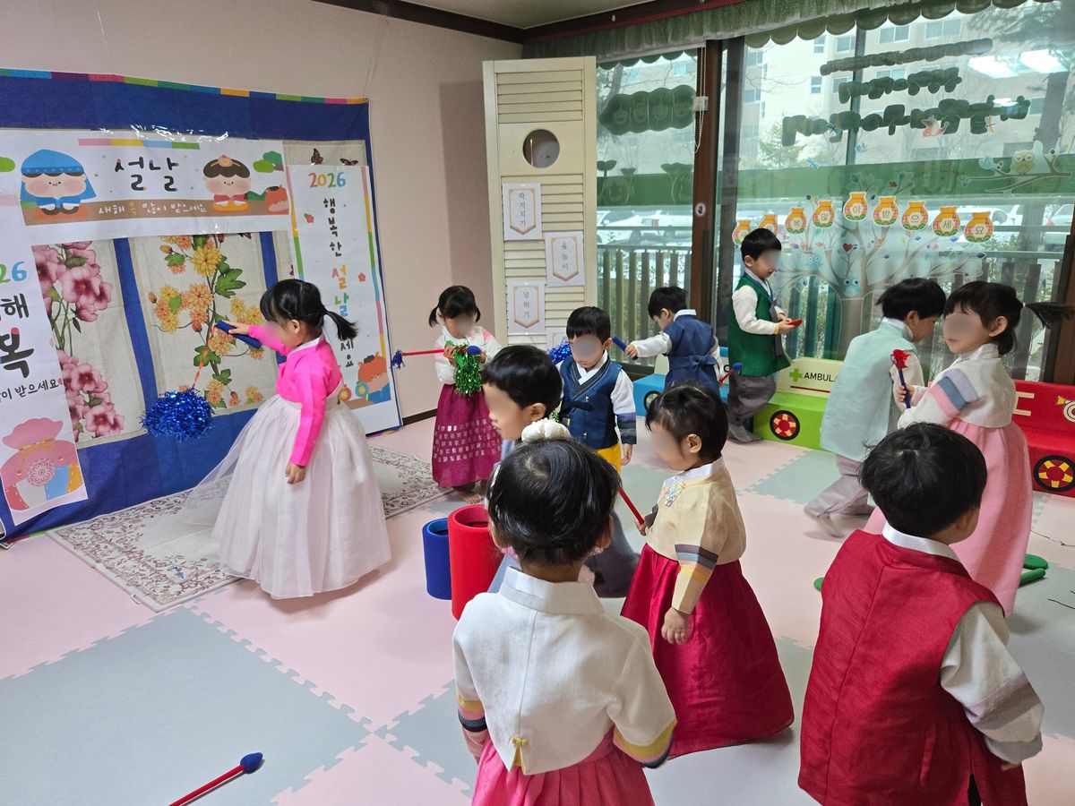 설날을 맞아 아이들과 함께 투호던지기, 재기차기, 비석치기, 뜀뛰기 등 다양한 민속놀이를 즐겼습니다. 놀이를 통해 우리 전통문화를 자연스럽게 경험하며 즐거운 시간을 보냈습니다.